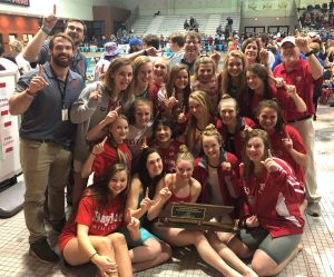 Eva Binder (6th-1 meter diving); Heidi Dierig (9th-200 IM, 11th-500 FR); Jewel Gordon (3rd-50 FR, 6th-100 BR); Sarah Hollowell (12th-100 BK); Jamee Mitchum (7th-100 BK, 8th-100 FLY); Cecilia Porter- Signal Mountain (2nd-100 BR); Haley Rice (3rd-1 meter diving); Audrey Rackel- Signal Mountain (15th-100 FLY); Addison Smith (1st-500 FR, 2nd-200 FR); Ellie Waldrep (2nd-100 BK, 2nd-100 FLY); Avery Wilson (14th-100 FLY); Callie West (7th-50 FR, 9th-100 FR); Dallas Woods (9th-100 BK, 10th-200 IM);