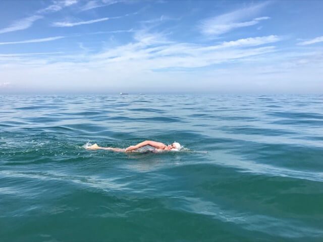 Coach Jenny Smith finished the English Channel Swim in August of 2017. She swam the grueling race in 11 hours and 13 minutes, and swam a total of 28 miles. The distance across the English Channel is approximately 21 miles or 32 kilometers. The fastest that anyone has made it across the English Channel is 7 hours, while the slowest is 27 hours. Unfortunately, her swim coach Anne Cleveland passed away two months before her English Channel swim. She received support and encouragement from her Cork Distance Week (days of swimming in Sandycove, Kinsale, Cork Ireland) swim family. The English Channel is a unique and demanding swim, considered by many to be the ultimate long distance challenge. It isn’t just the distance that is the challenge, but more, the variable conditions that you are likely to encounter. These may vary for mirror like conditions to wind force 6 and wave heights in excess of 2 meters. The water is cold and, there is a good chance of meeting jellyfish, seaweed and the occasional plank of wood. It is one of the busiest shipping lanes in the world with 600 tankers passing through and 200 ferries/sea cats and other vessels going across daily.